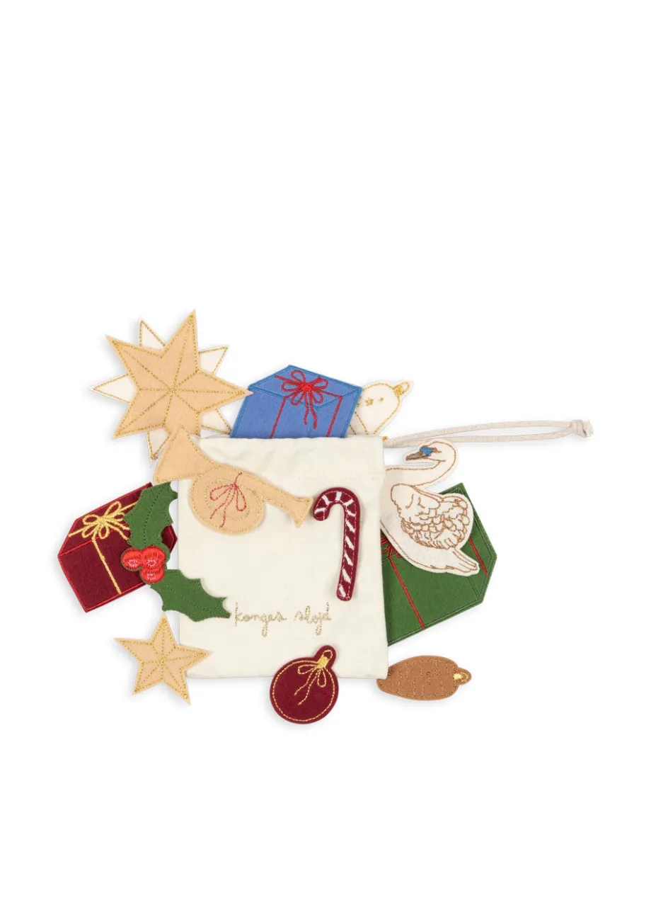 Julekalender. der hjælpe de utålmodige med at tælle ned til jul. Indeholder 24 små ting i en bomuldspose til at pynte julekalenderen med og gøre den mere festlig. Praktisk snor ti