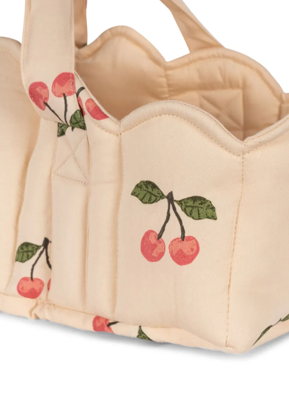 Polstret dukkelift i 100 % bomuld. Har praktiske bærestropper. bløde kanter og muslingekanter. Lavet af 100 % bomuld med fyld af genanvendt polyester Dette produkt er certificere