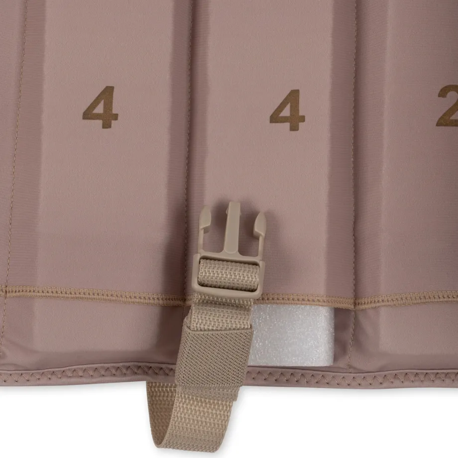 Flydevest i 80 % neopren og 20 % polyester. 1-2 år: H: 3.4 x B: 27.5 x L: 32 cm 2-3 år: H: 3.4 x B: 29 x L: 36 cm 3-6 år: H: 3.4 x B: 31 x L: 39 cm Størrelsesguide: 11-15 kg – 1-