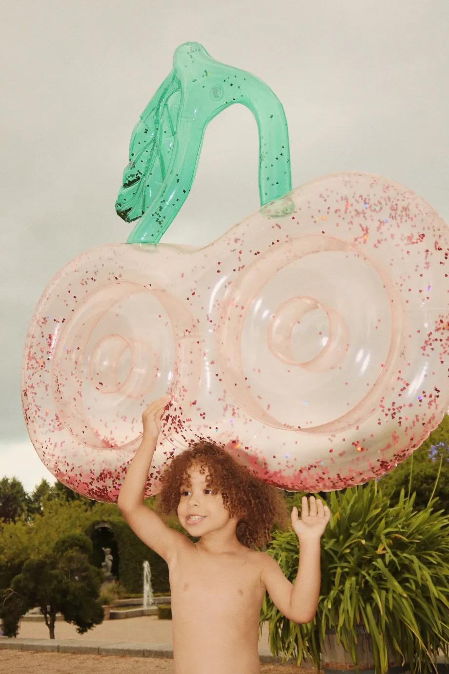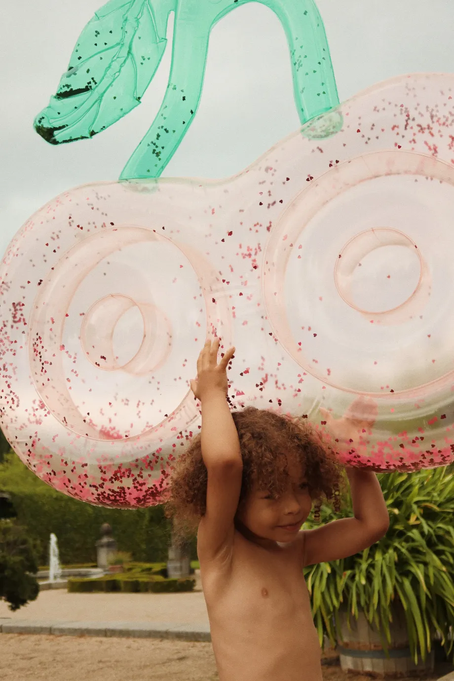 Kirsebærformet bademadras. Fremstillet af 100 % PVC H: 18.5 cm x B: 120 cm x L: 116.5 cm