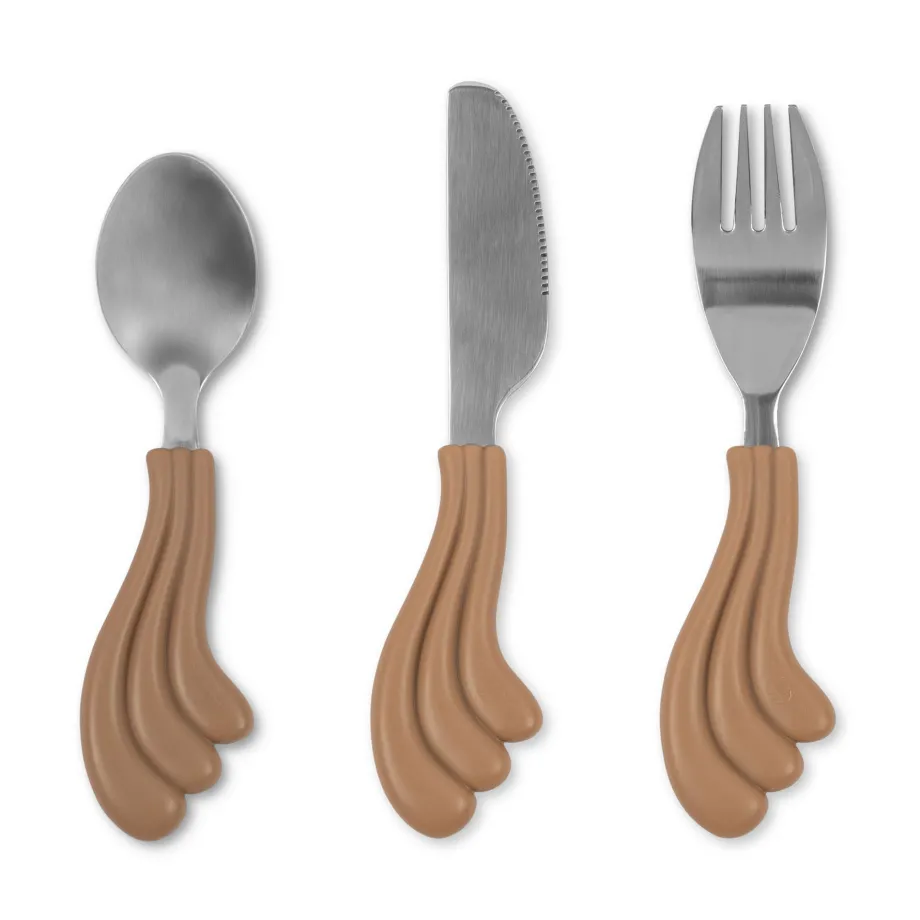 3-pak børnebestik med kniv. gaffel og ske. Fremstillet i rustfrit stål og PP. Anbefales til børn fra 3 år og op. Kniv: 14.8 cm Gaffel: 14.3 cm Ske: 13.5 cm Testet og i overens