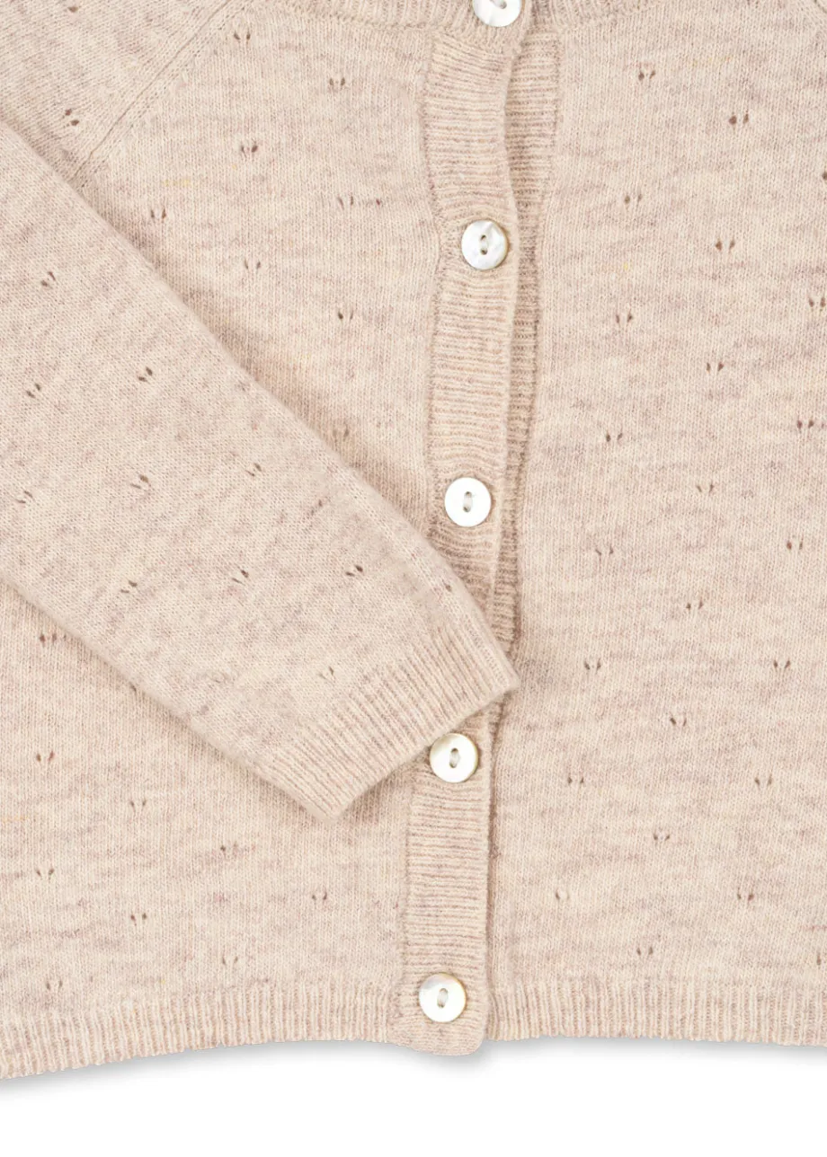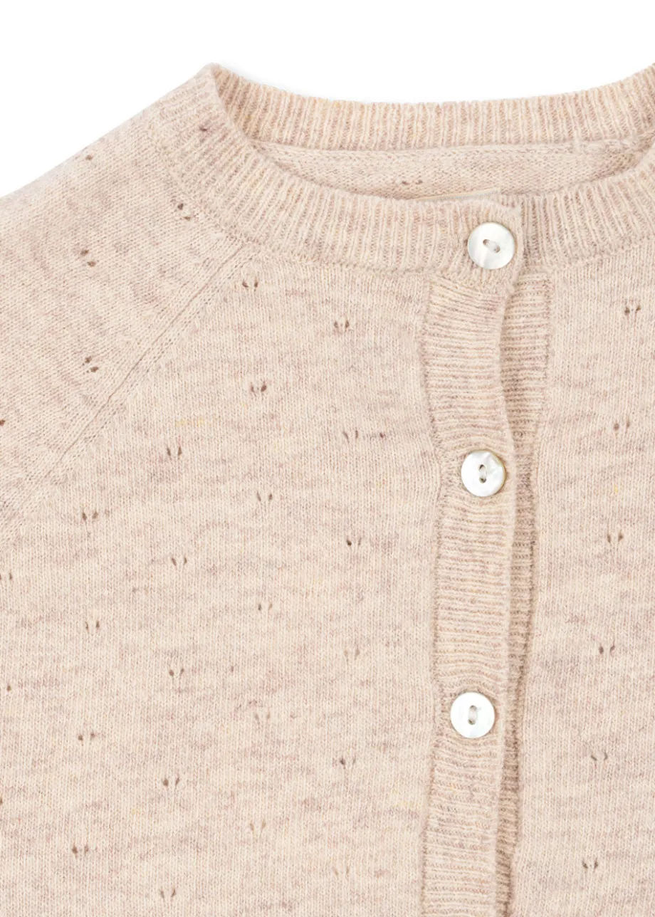 Sale Konges Sløjd MINO CARDIGAN – OFF WHITE MELANGE POINTELLE offwhitemelangepointelle