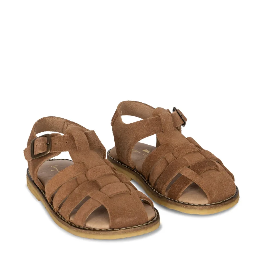 Sandaler med lukket tå. flettede remme i 100 % ruskind og justerbart spænde. De har en polstret indersål. som sikrer ekstra komfort. og en ydersål i rågummi. Skostørrelse: 20 – 13