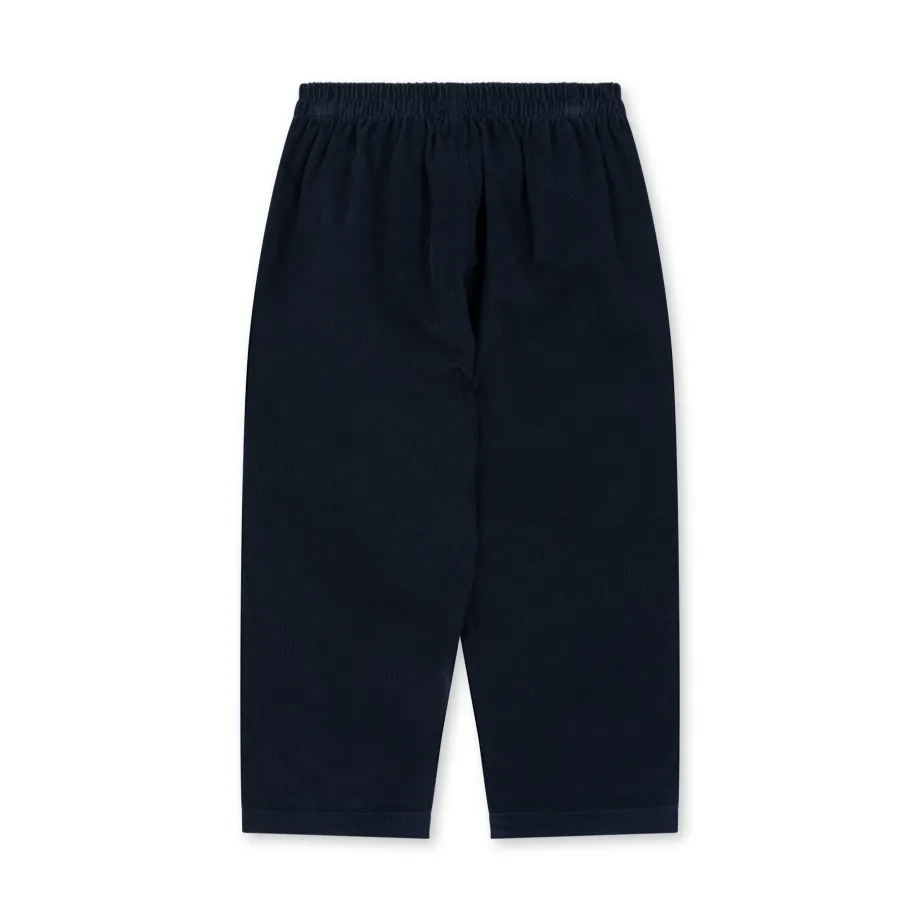 Bløde fløjlsbukser i en varm og kraftig kvalitet. Med elastik i taljen og lommer foran. Lavet af 100 % økologisk bomuld