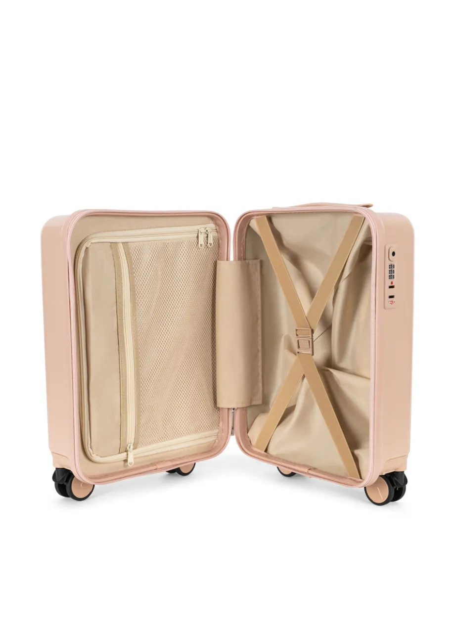 Let kabinekuffert. velegnet som håndbagage. Designet med en hård skal. fire dobbelte 360-graders drejehjul og en godkendt indbygget TSA LOCK®-lås med kode. Med et praktisk håndta