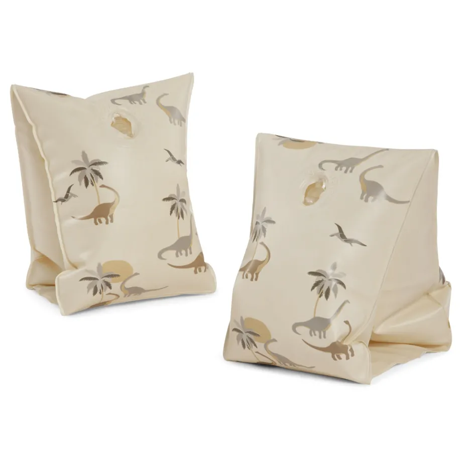 Badevinger i 100 % slidstærk PVC. H: 18 cm x B: 14 cm x L: 18 cm 3-6 år (Vægt: 19 kg – 30 kg) EU/AUS: ADVARSEL! BESKYTTER IKKE MOD DRUKNING – BRUG KUN UNDER KONSTANT OPSYN AF EN
