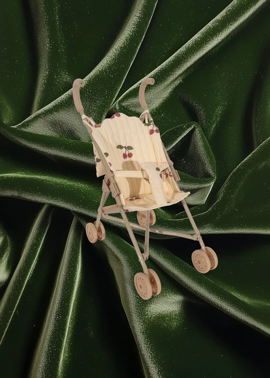 Dukkeklapvogn med sele. bæretaske og dobbelthjul på alle fire ben for ekstra stabilitet. Med aftageligt stof. Leveres fuldt samlet. Let at folde sammen og opbevare. Stellet er frem