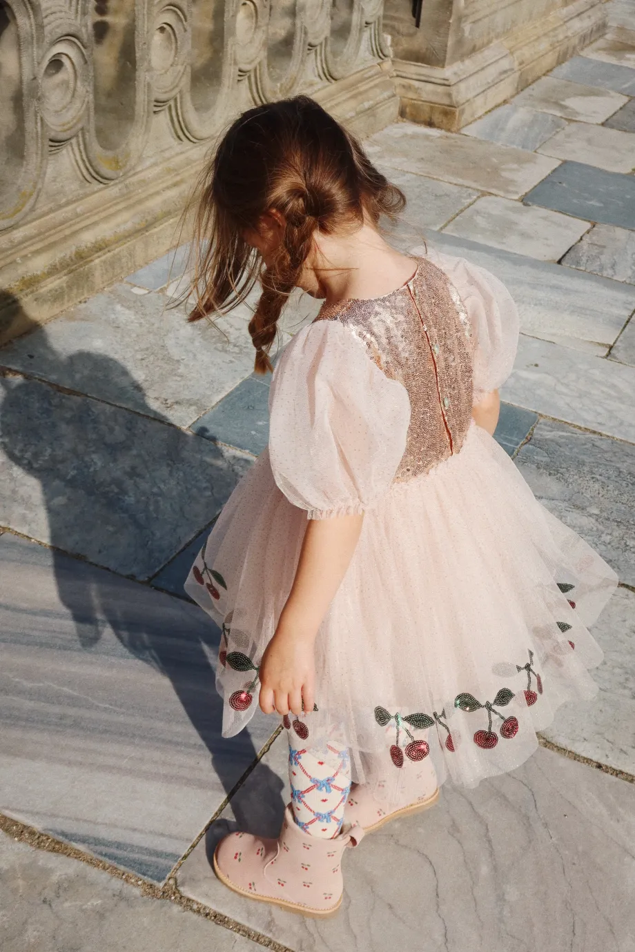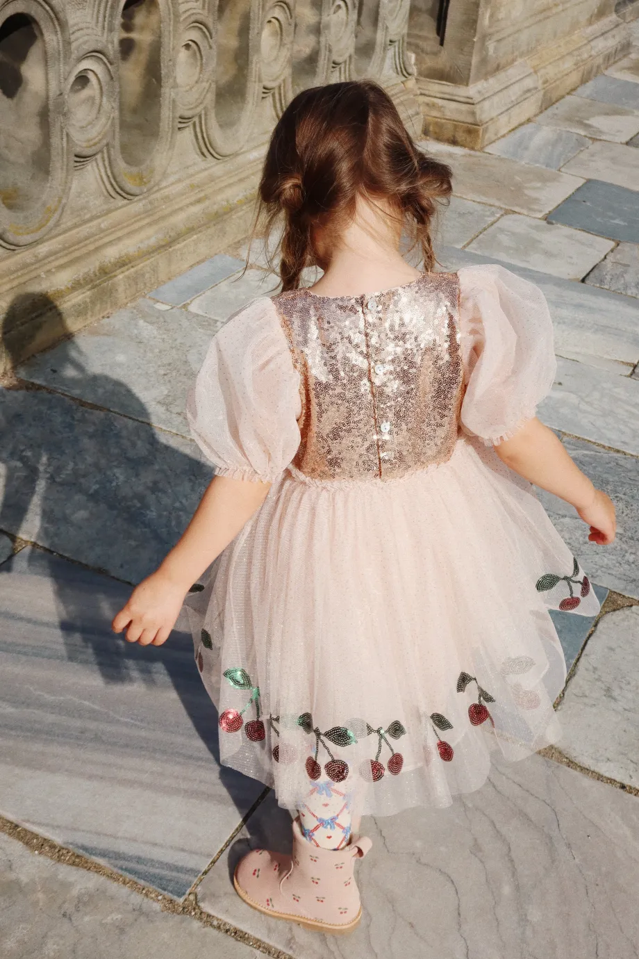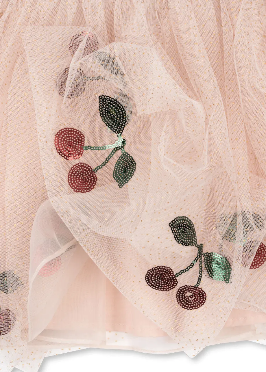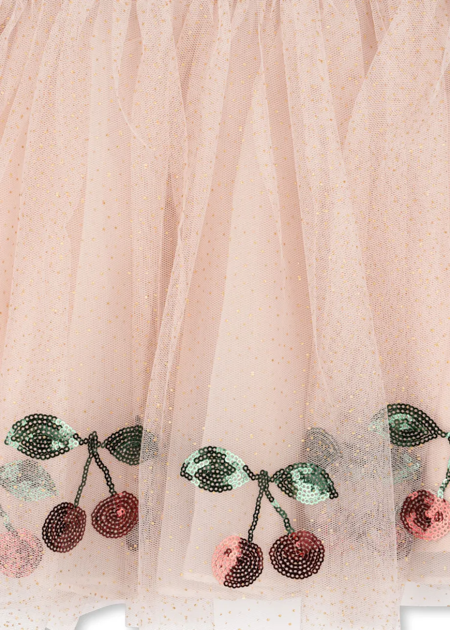 Kjole med pufærmer. glitrende pailletoverdel og tylskørt i lag. En festlig favorit. der passer til alle lejligheder. Med knaplukning bagpå. Lavet af 100 % polyester og 100 % PET me