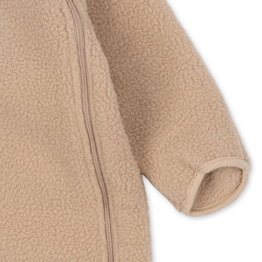 Heldragt i blød fleece. Med ombukkede kanter. der holder barnets hænder og fødder dejligt varme. Dette produkt er certificeret i henhold til OEKO-TEX® STANDARD 100. klasse 1 af DTI